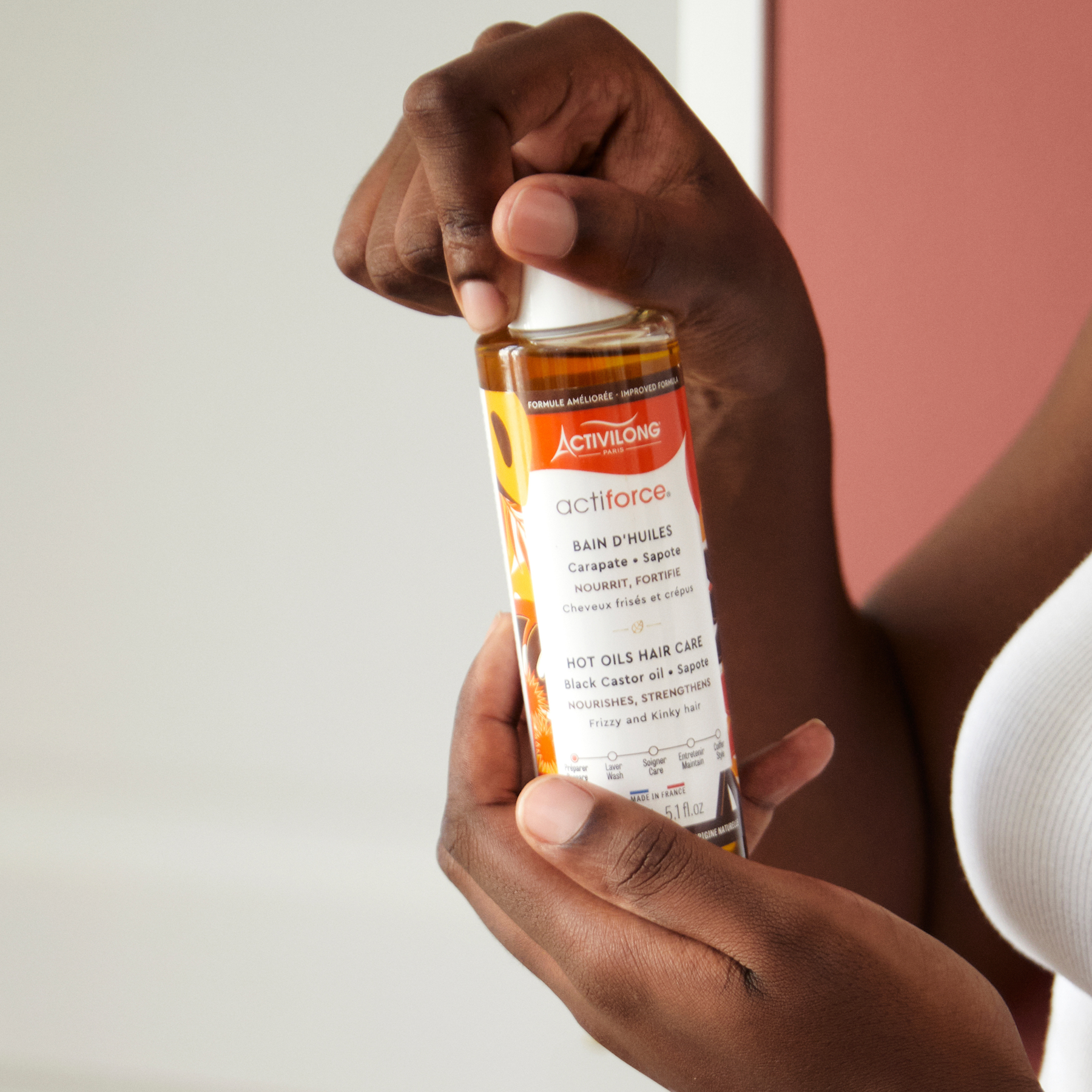 Grâce à sa combinaison d'huiles végétales pures, le Bain d'Huile Actiforce est idéal pour nourrir et restaurer les cheveux secs, ternes et abîmés.